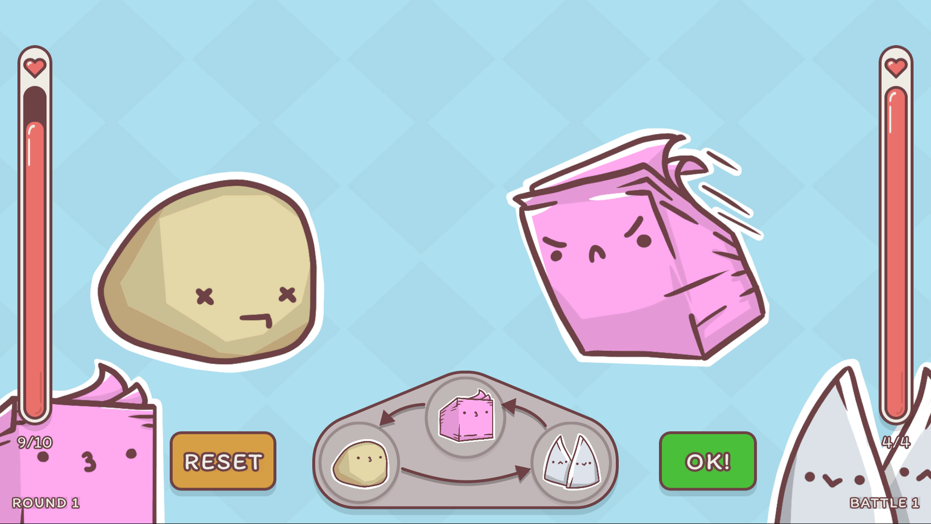 Play, experiment, and craft your own path to victory in the most chaotic version of Rock, Paper, Scissors you’ve ever seen!